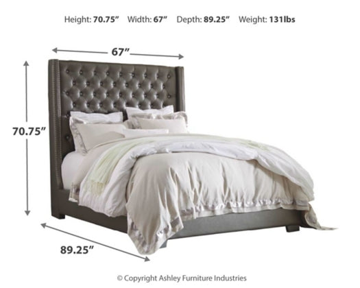 • Queen upholstered headboard: 67" W x 10.75" D x 70.75" H