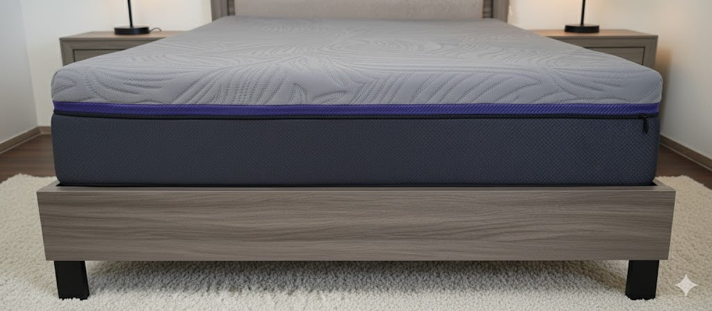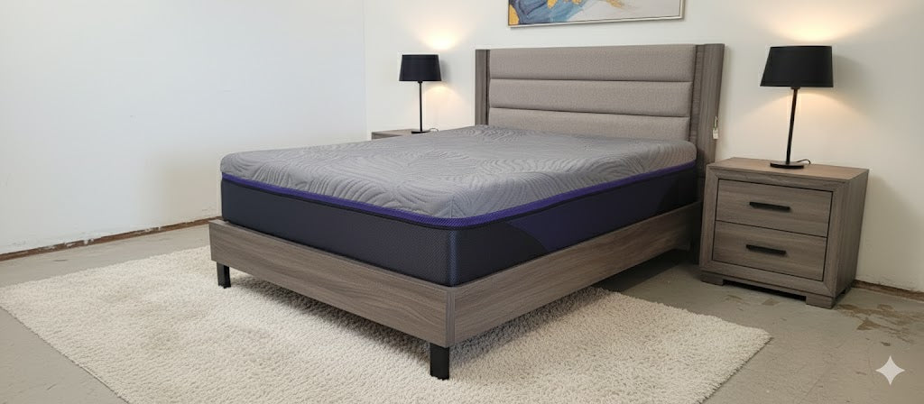 The Queen size mattress is 12" high, offering a firm feeling of support. It features a high-quality memory foam layer for excellent pressure relief and comfort. The gray top cover showcases a stylized, quilted texture, while the distinct dark gray side panel gives it a modern look. The combination of its density and construction provides a truly supportive and restorative sleep experience.