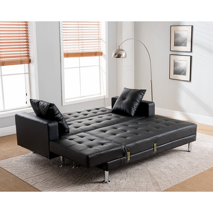 1-PC of 8036-BK-SOFA *C/O* Box 1 OF 2 - BLACK PU Click Clack Futon Sofa Bed (1 Arm + 1 Pillow + 4 Legs)