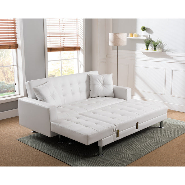 Soft Polyurethane / Faux Leather Upholstered Tufted Reversible Chaise L-Shape Sectional Click-Clack Convertible Sofa Bed with 2 Throw Pillows. Weight Support Capacity: up to 881.85 lbs.