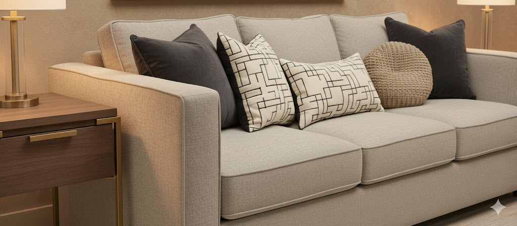 This stylish sofa bed is upholstered in a soft beige fabric, making it a versatile addition to any contemporary space. It easily converts to a comfortable Queen bed, featuring an included memory foam mattress for a great night's sleep. The overall dimensions are approximately 91 LENGTH ,36" depth, 30" height.