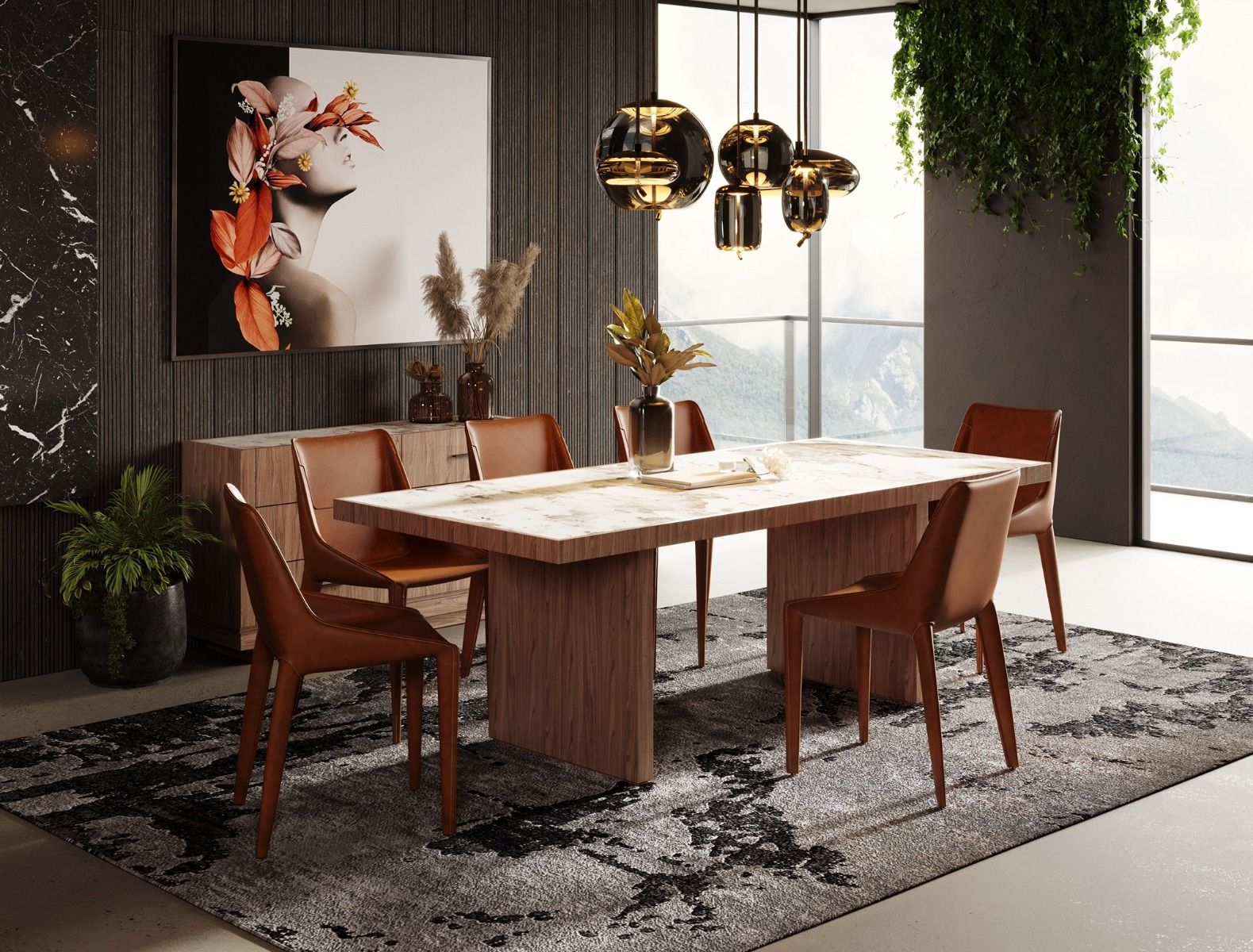 Introducing the Nova Domus Bailey Modern Walnut Rectangular Dining Table, a stunning centerpiece for any contemporary dining space. Crafted with meticulous attention to detail, this table boasts a sleek and sophisticated design.