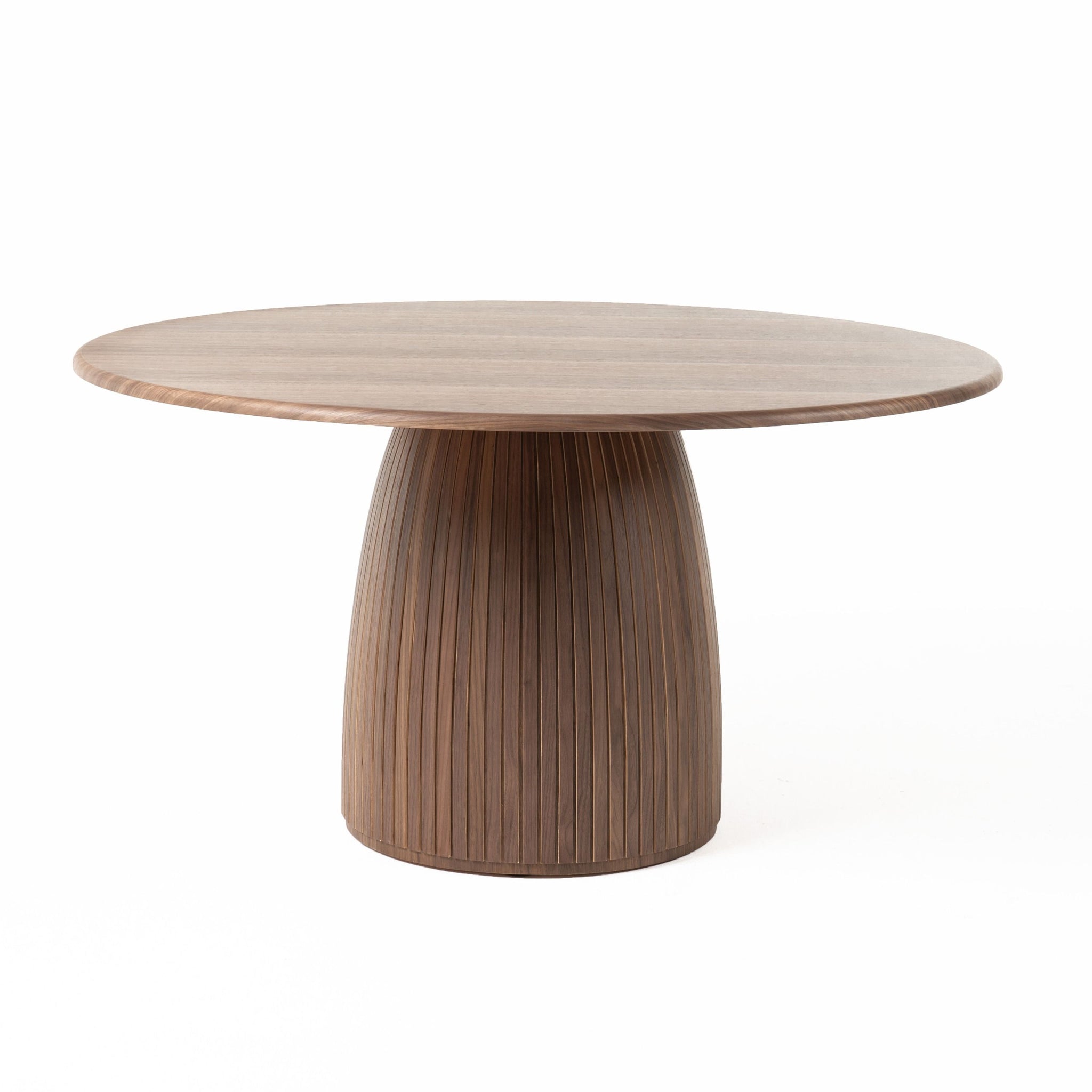 The Sheridan Round Walnut Dining Table is a beautiful addition to any dining room. The walnut veneer wood top and panel pedestal base provide a simple yet stylish look that creates an elegant atmosphere.