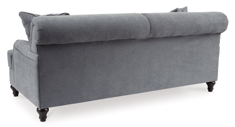 With its graceful curves and rich elements, this sofa and loveseat set in slate blue embraces a sense of tradition in a way that feels fresh and new. A favorite among romantics, the Charles of London arms and rollback profile are beauty to behold. Crisp and clean 2-over-2 cushion styling and monochromatic throw pillows prove that less can be more.