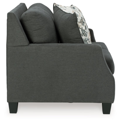 Dressed to impress with distinctive cutaway arms, this sofa and loveseat set is an above-and-beyond choice for your fashionable abode. Wrapped in a soft flatwoven charcoal fabric that’s naturally on trend, this designer set is sure to suit contemporary spaces and modern farmhouse places—and look right at home with classic and eclectic furnishings. That’s the beauty of a great transitional piece of furniture.