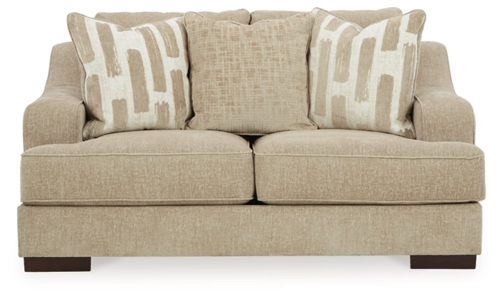 With a comfy, cozy aesthetic, this upholstery package is simply stylish in a neutral beige hue. Softly curved slope arms add a polished touch to the irresistibly plush cushions. Whether you're curling up with a book or tuning in to TV, this set brings subtle charm to your space.