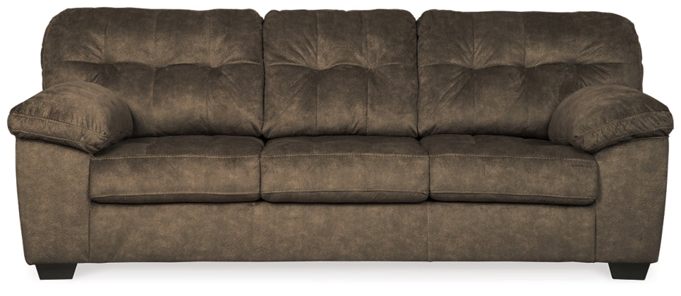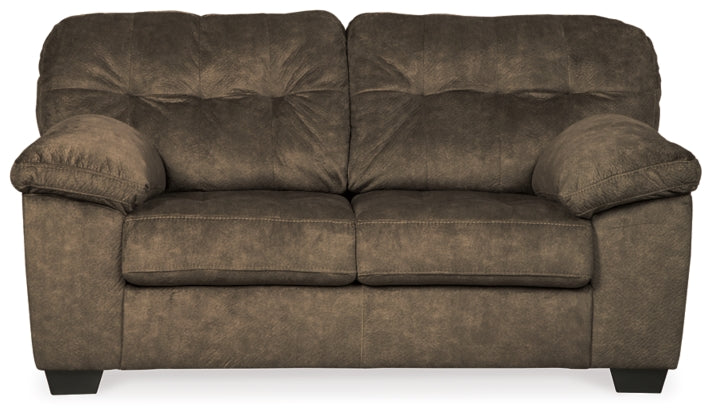 Looking for the perfect blend of decadent comfort and contemporary flair? Feast your eyes on this sensational sofa and loveseat set. Tufted box cushioning and thick pillow top armrests brilliantly merge style and a sumptuous feel. Wonderfully plush to the touch, the earthy brown fabric is the ultimate choice for a chic, trendy look.